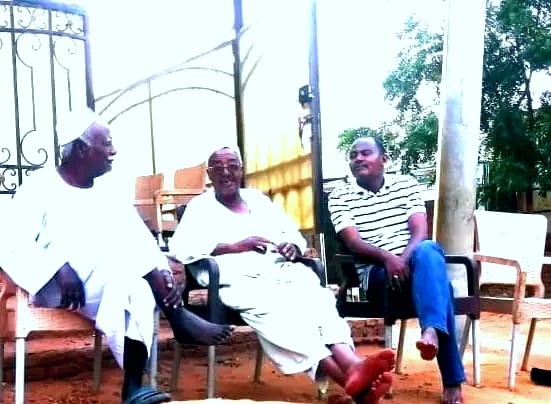 تمنياتُ الصحةُ والعافيةِ عمي نمر في أقصَا الصُورة وعمي مليك بَسامٌ وهو يتَوسَطنا.