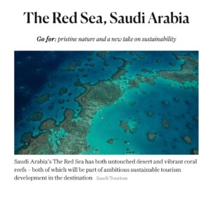 تفاعلت أهم المنصات الإعلامية الدولية المختصة بالسياحة والسفر في الولايات المتحدة والمملكة المتحدة وفرنسا مع عدد من الوجهات السياحية بالمملكة العربية السعودية؛ بصفتها الوجهة الأسرع نمواً بالعالم، حيث أدرجت “كوندي ناست” المجلة الأمريكية الرائدة عالمياً في مجال السفر والسياحة؛ وجهة البحر الأحمر ضمن 24 وجهة سياحية عالمية تستحق الزيارة خلال العام 2024، وهو الأمر الذي يعزز من مكانة المملكة على خارطة السياحة العالمية، ويؤكد التزامها بالاستدامة والحفاظ على البيئة واستخدام الطاقة المتجددة.